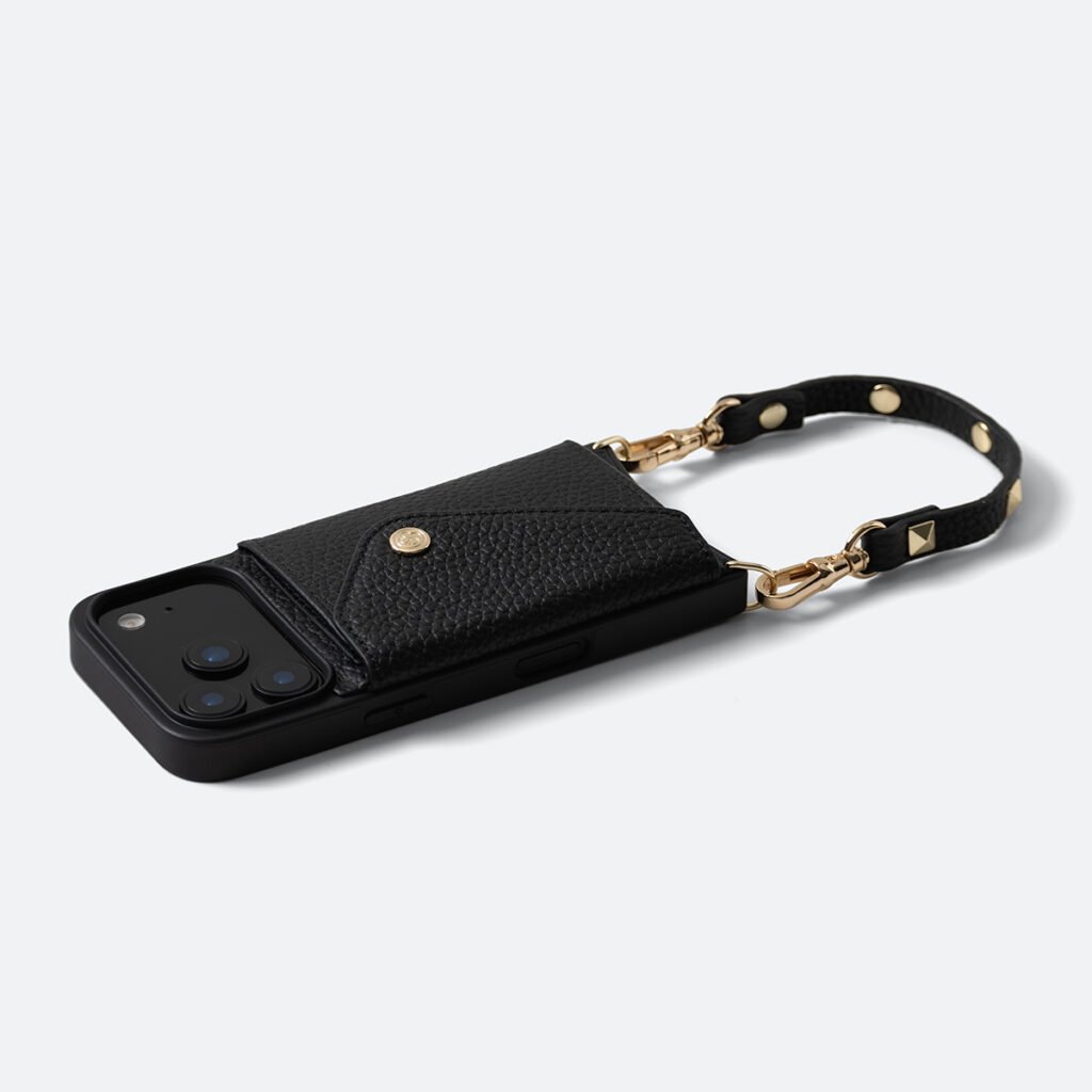 • Deluxe Pyramid-Studded wrislet: Premium 9″ with a lustrous gold-tone buckle. Features a seamless detach for stand-alone phone case use.